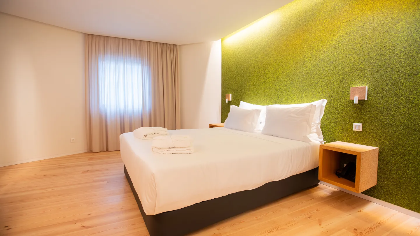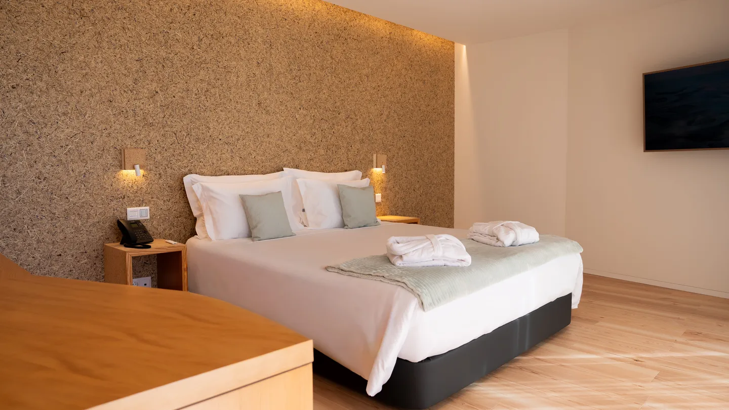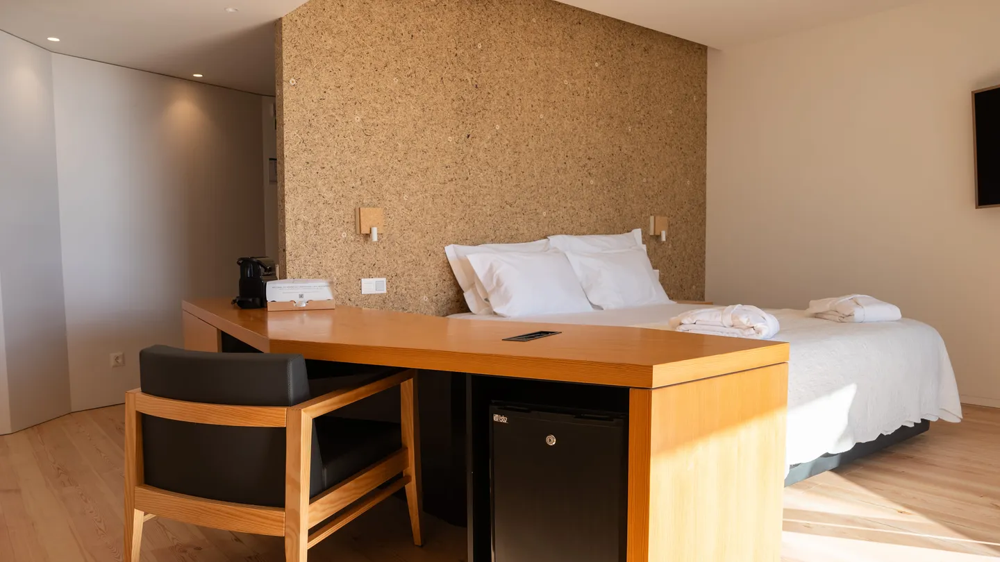Vista privilegiada | Cama king-size | Wi-Fi gratuito | Ar condicionado | Máquina de café / chaleira | Amenities premium | Casa de banho privativa com duche walk-in de grandes dimensões | Duche com cromoterapia | Acesso à garagem interna e coberta do hotel | Possibilidade de carregamento de viaturas elétricas, mediante pagamento