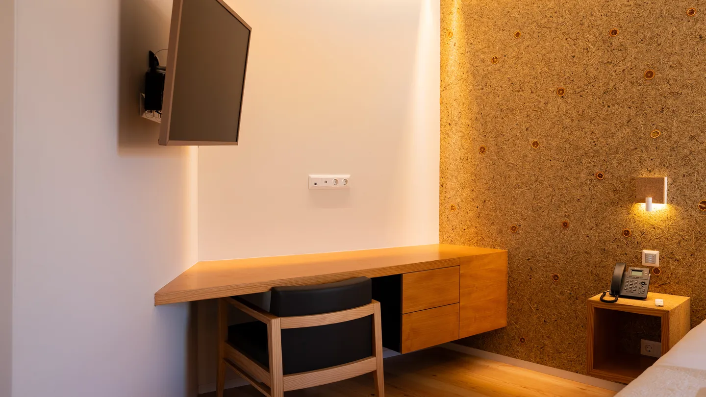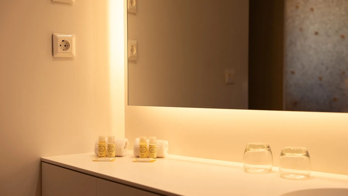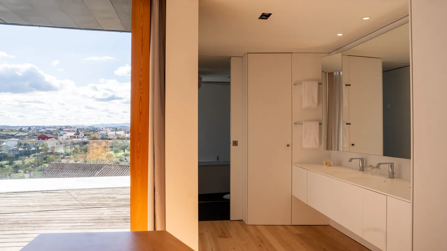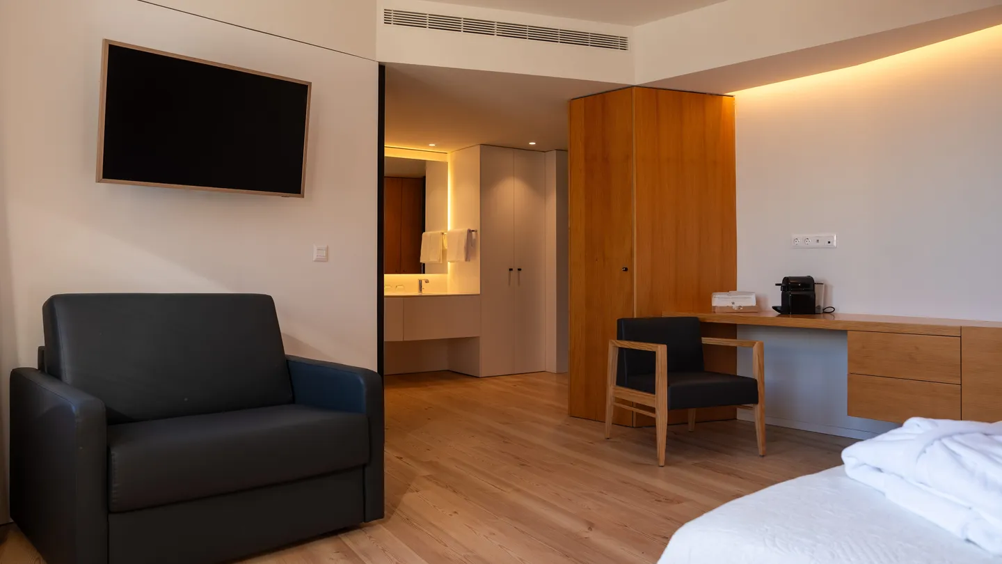 Vista privilegiada | Cama king-size | Wi-Fi gratuito | Ar condicionado | Máquina de café / chaleira | Amenities premium | Casa de banho privativa com duche walk-in de grandes dimensões | Duche com cromoterapia | Acesso à garagem interna e coberta do hotel | Possibilidade de carregamento de viaturas elétricas, mediante pagamento